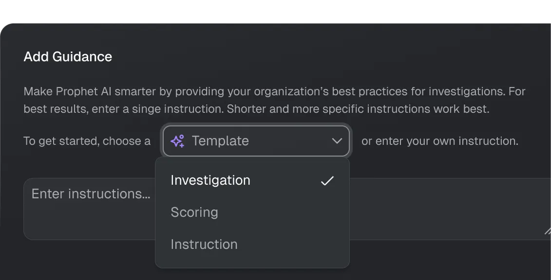 Prophet AI’s agentic architecture learns and adapts to a customer's environment on an ongoing basis, ensuring that customer guidance is applied in real-time to every investigation.