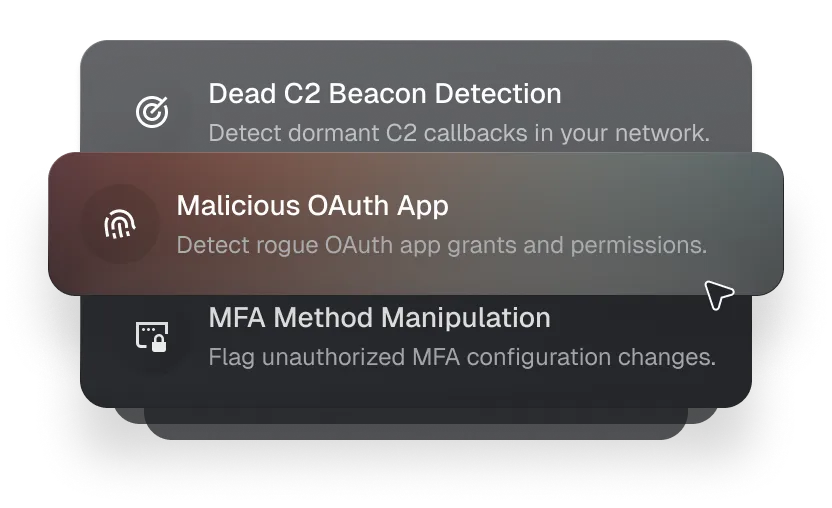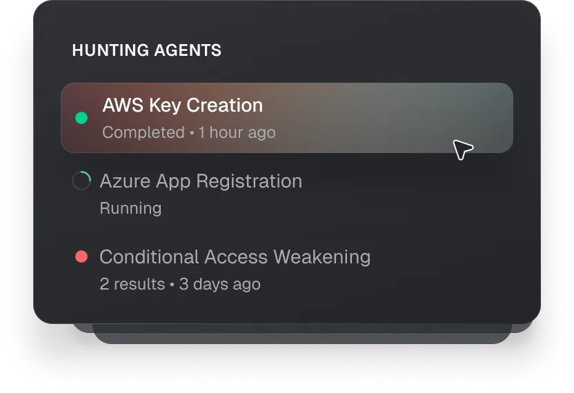 Prophet AI agents continuously monitor for and identify emerging threats in your environment. This ensures 24/7 protection against previously unknown threats that may have bypassed traditional security measures.